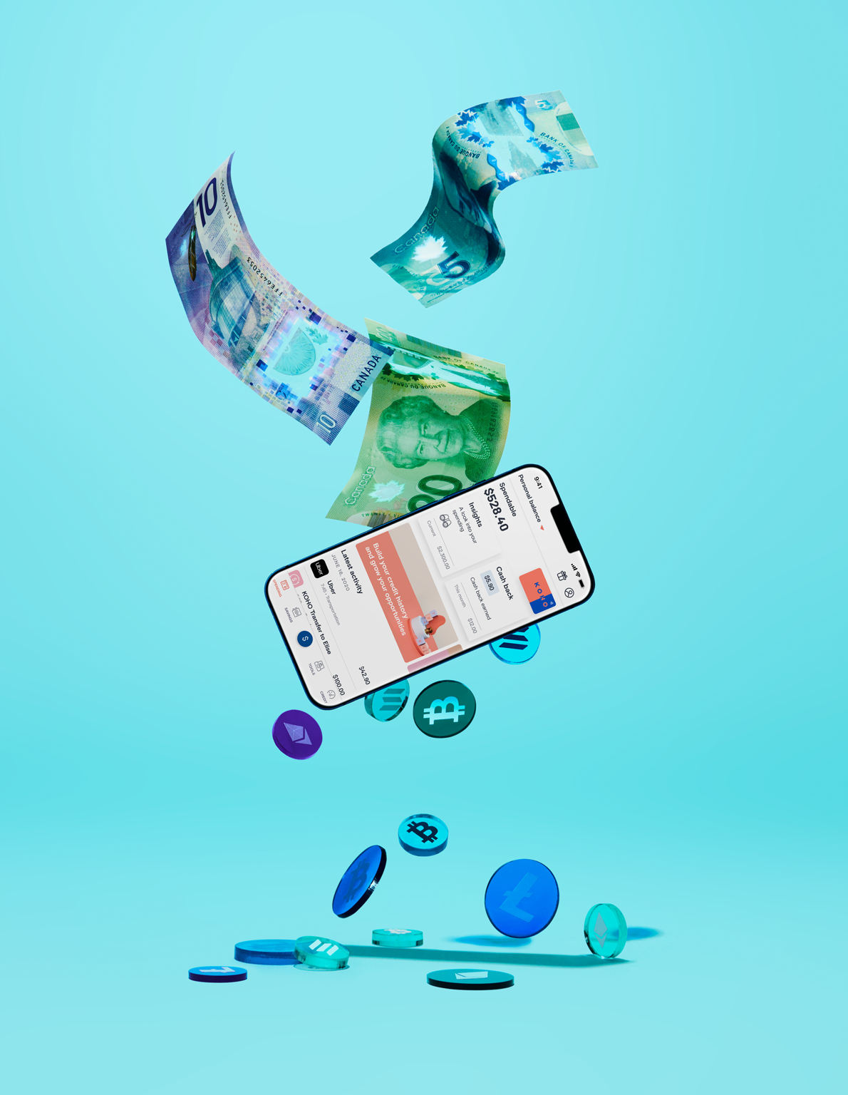 I was tasked to create some images for KOHO’s crypto product launch with the SIM as cash-to-crypto instantly.