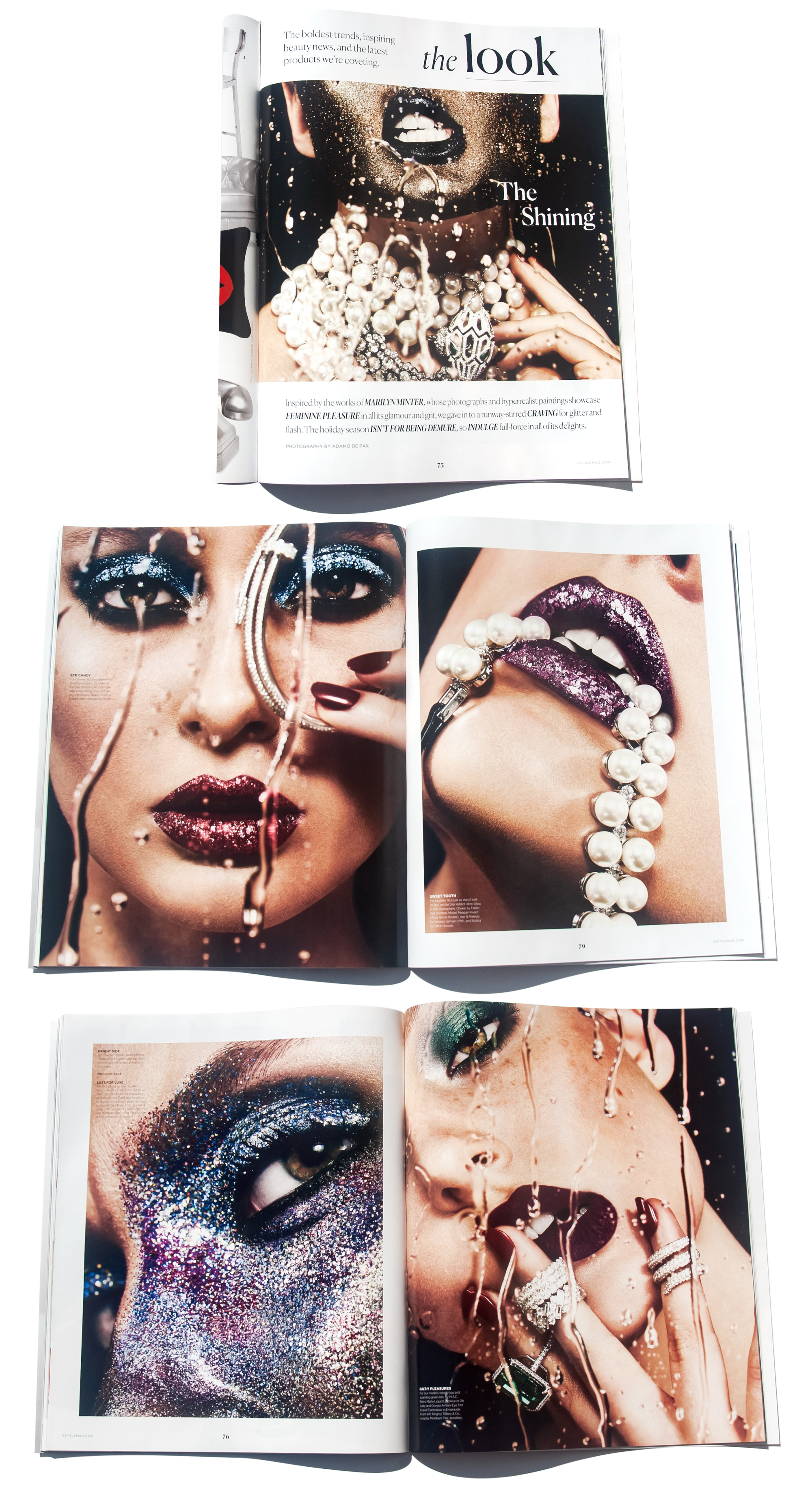 Inspired by the work of Marilyn Minter, this story features luxurious accessories and a craving for glitter and flash.